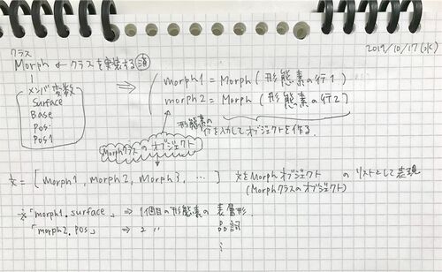 引き続き自然言語処理100本ノックの#40を考えている。 クラスとオブジェクトの考え方が難しい。なんか本かレッスンで系統的に勉強したほうがいいのか?